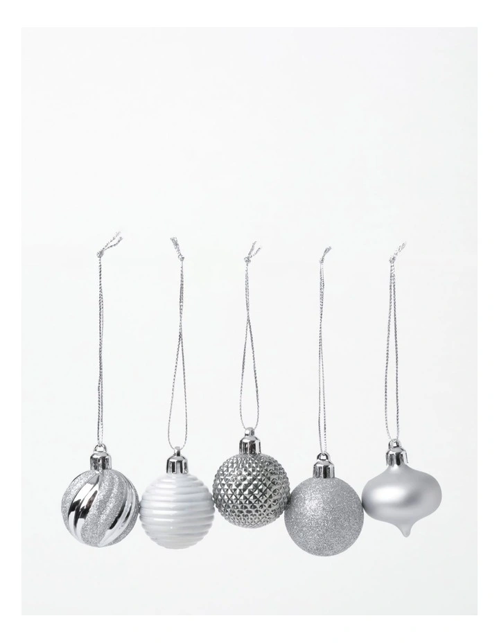 Australian House & Garden EC 30 pk Shatterproof Baubles- Silver/White: 4 cm