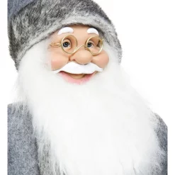 AUSTRALIAN HOUSE & GARDEN Eucalyptus Plastic Santa with Gunmetal Grey Fur Coat holding Sack w/ Pinecones and Presents