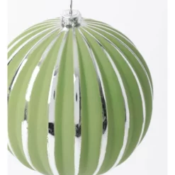 Australian House & Garden Eucalyptus Plastic Stripe Bauble Ornament- Green/Silver: 10cm