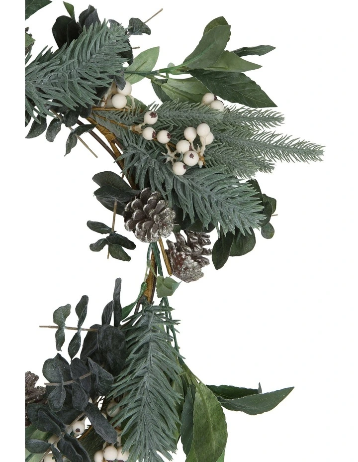 AUSTRALIAN HOUSE & GARDEN Eucalyptus White Berries and Silver Plastic Pinecones Leave Wreath