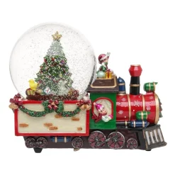 MYER GIFTORIUM Heirloom True Red Polyresin Train with Christmas Tree inside globe Wind up Music Snowglobe