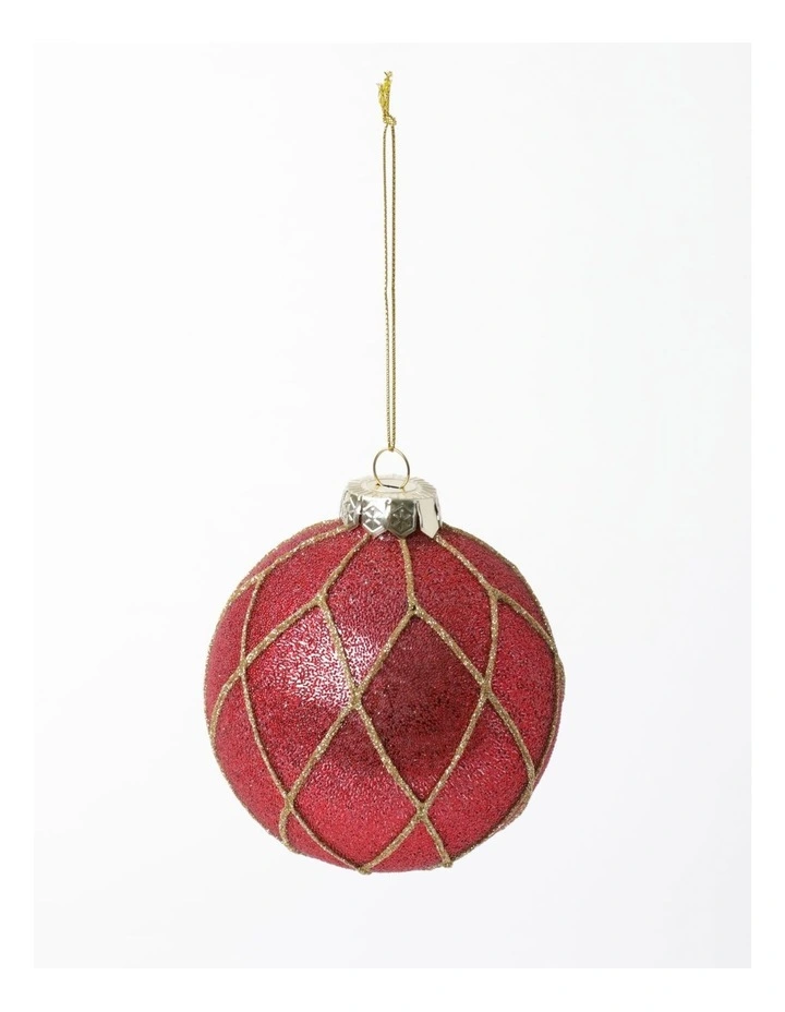 Myer Giftorium Heirloom Glass Beaded Diamond Grid Bauble- Red: 8cm