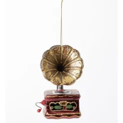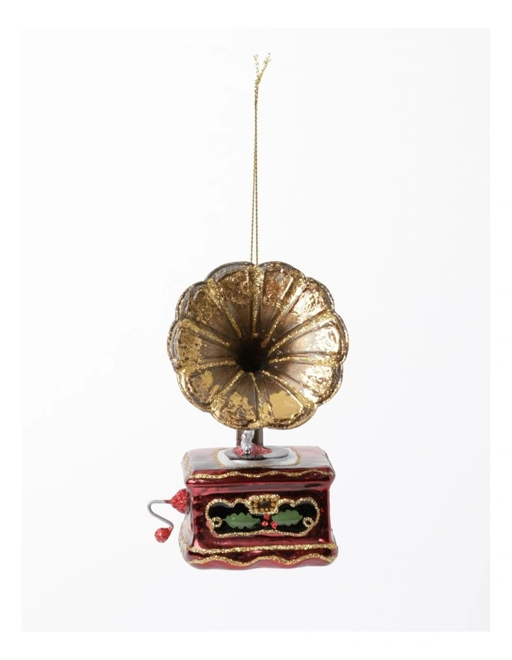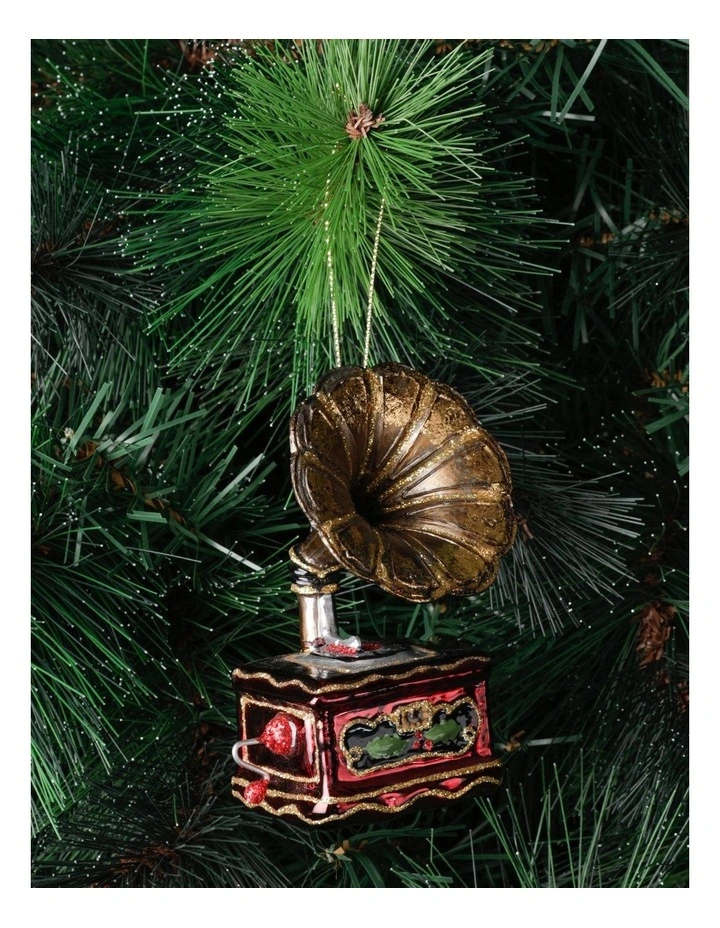 Myer Giftorium Heirloom Glass Gramophone Ornament- Gold/Brown: 11cm