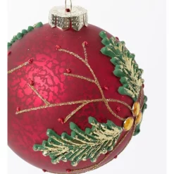 Myer Giftorium Heirloom Glass Holly Leaf Bauble Ornament- Red: 10cm