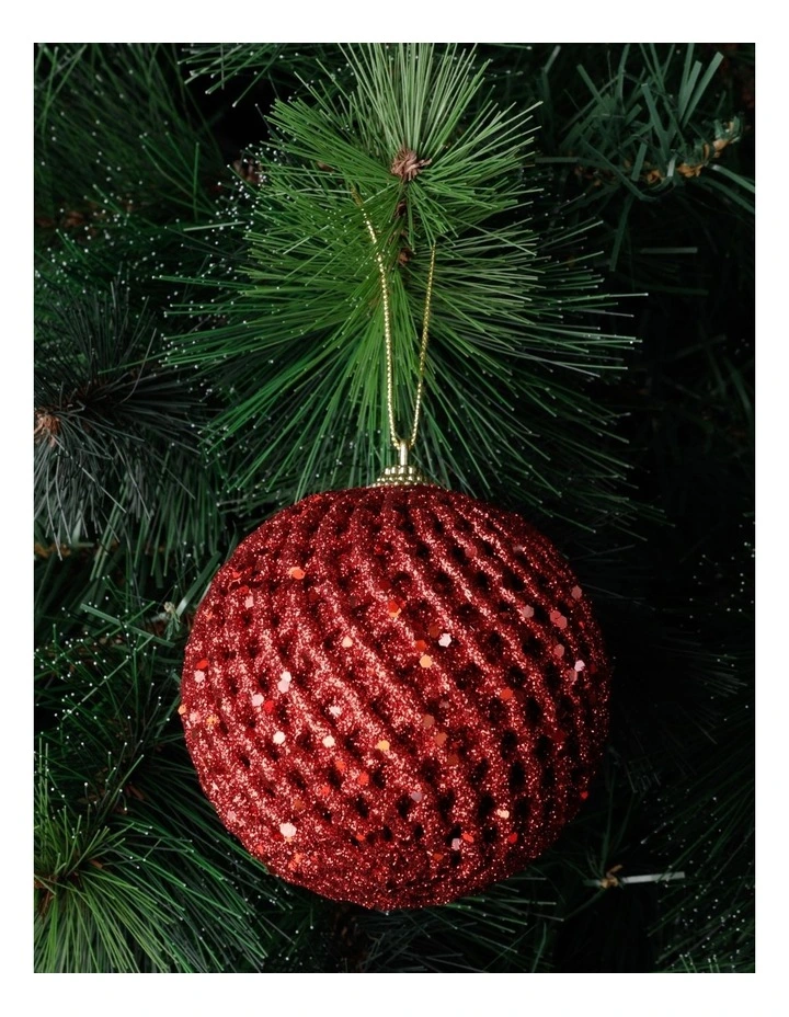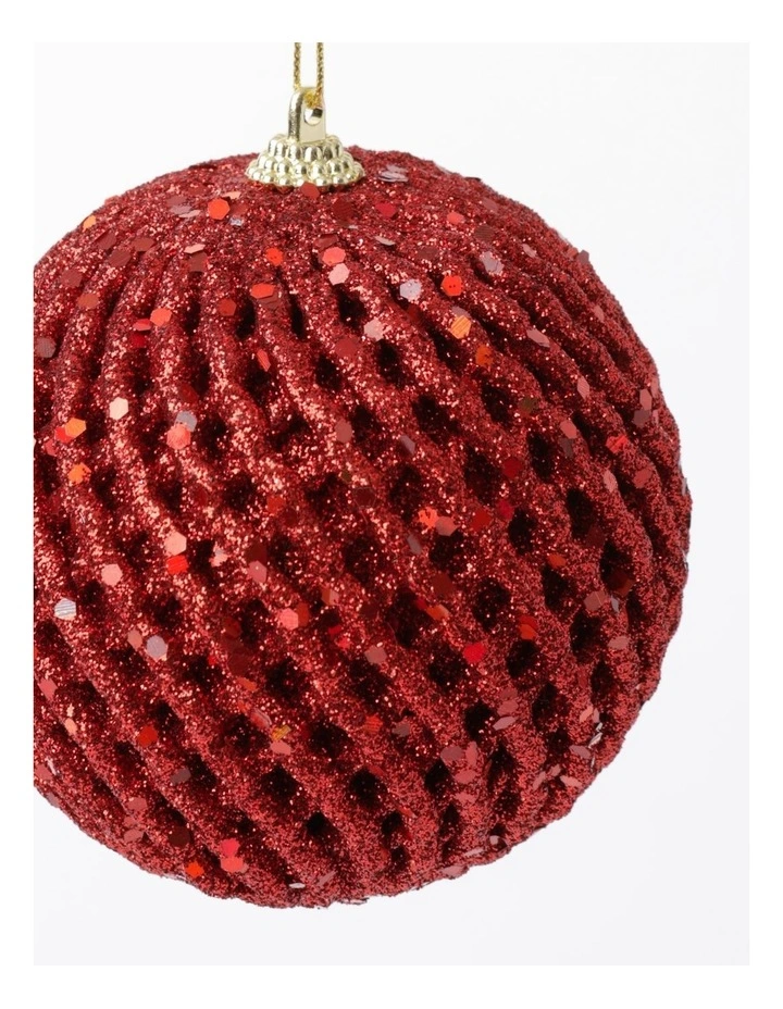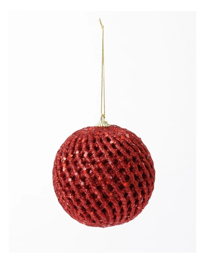 Myer Giftorium Heirloom Glittered Weave Bauble- Red: 8cm