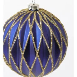 Myer Giftorium Heirloom Plastic Embossed Diamond w/Glitter Bauble- Blue: 8cm