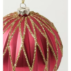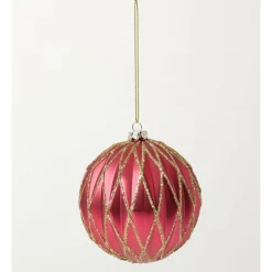 Myer Giftorium Heirloom Plastic Embossed Diamond w/Glitter Bauble- Red: 8 cm