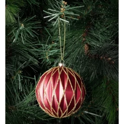 Myer Giftorium Heirloom Plastic Embossed Diamond w/Glitter Bauble- Red: 8 cm