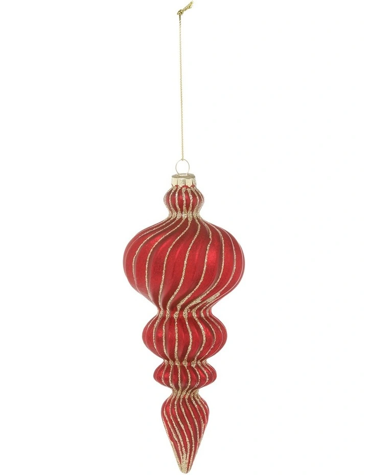 MYER GIFTORIUM Heirloom Red Glass Finial with Gold Glitter