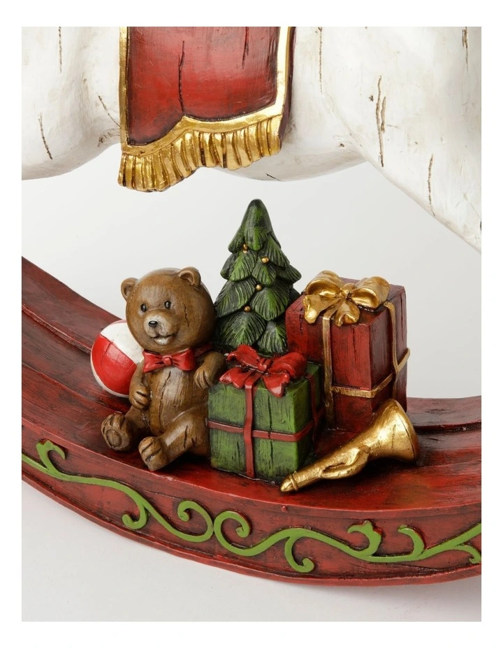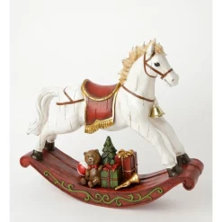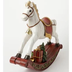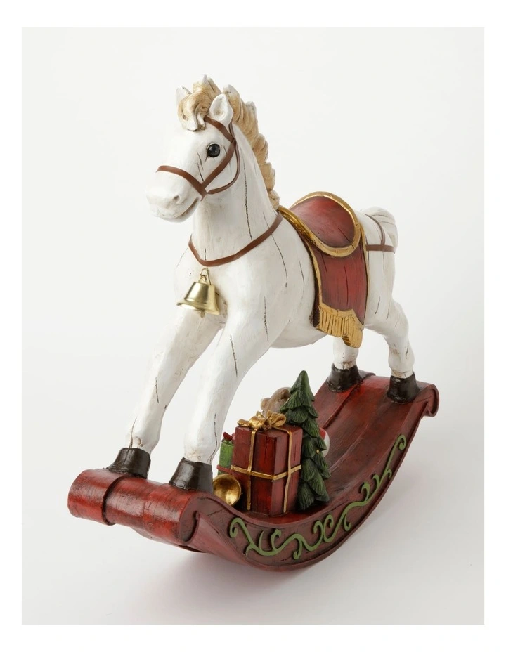 Myer Giftorium Heirloom Resin Decorative Rocking Horse w/ Gifts- White/Red: 44cm