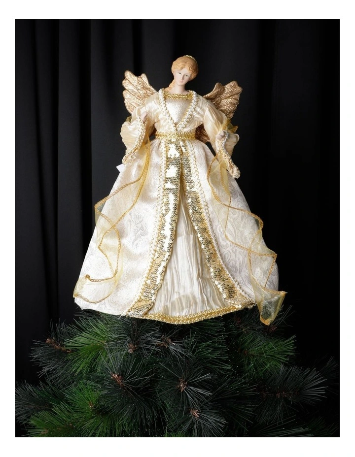 Best deal 🧨 Myer Giftorium Luxe Evangeline Fabric Angel Tree TopperWhite/Gold: 32cm πŸ‘