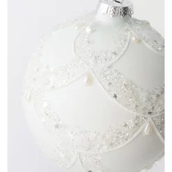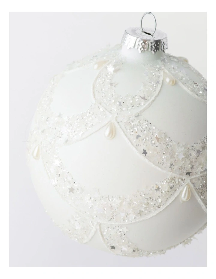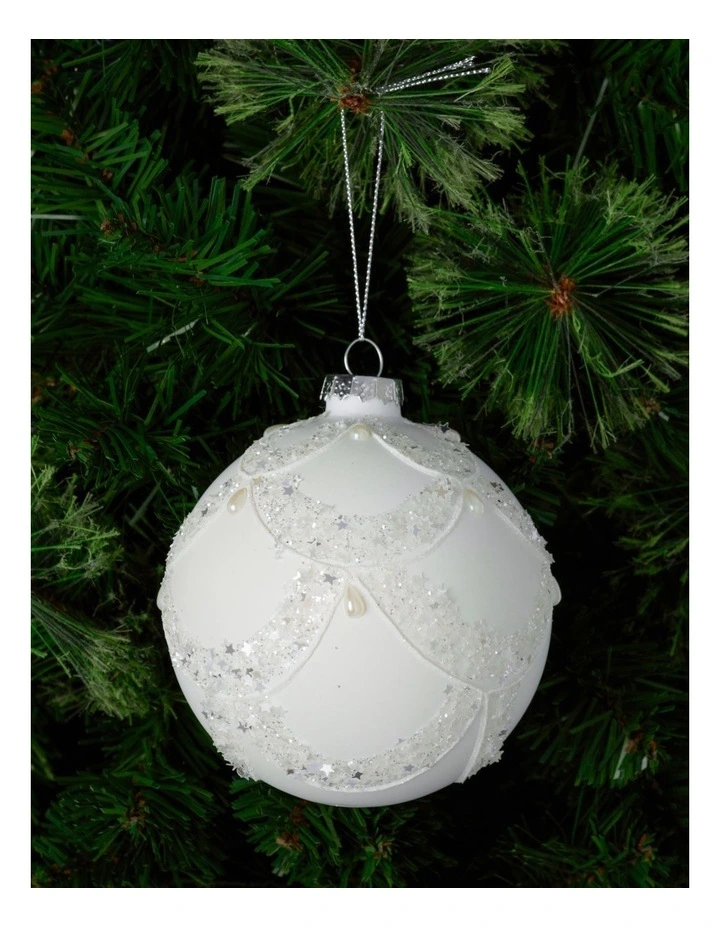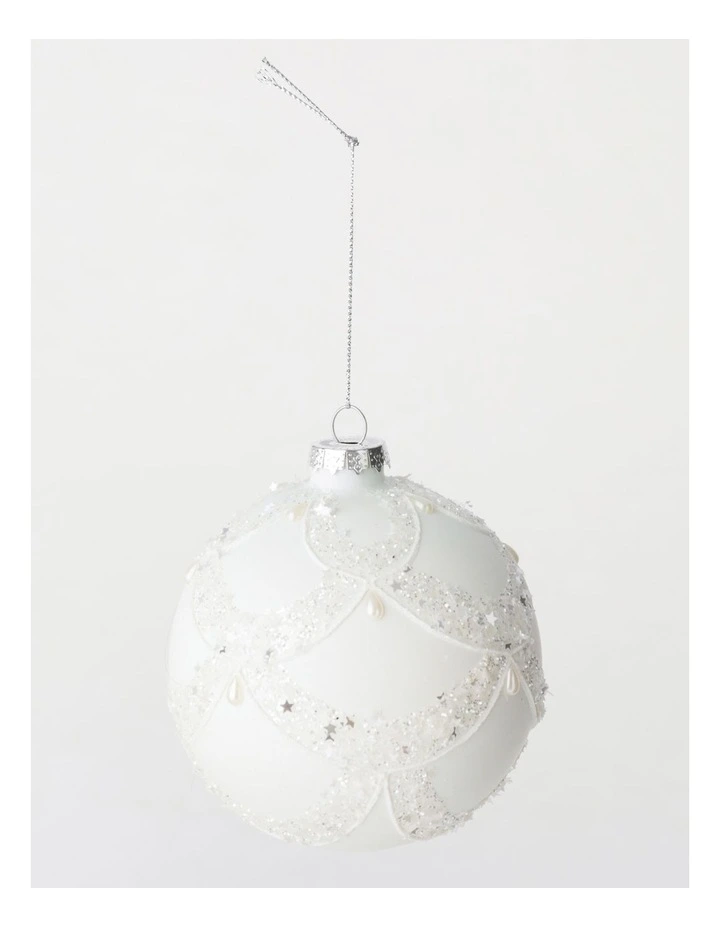 Brand new πŸŽ‰ Myer Giftorium Luxe Glass Lace Grid With Pearls Bauble In White πŸ””