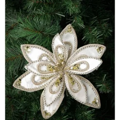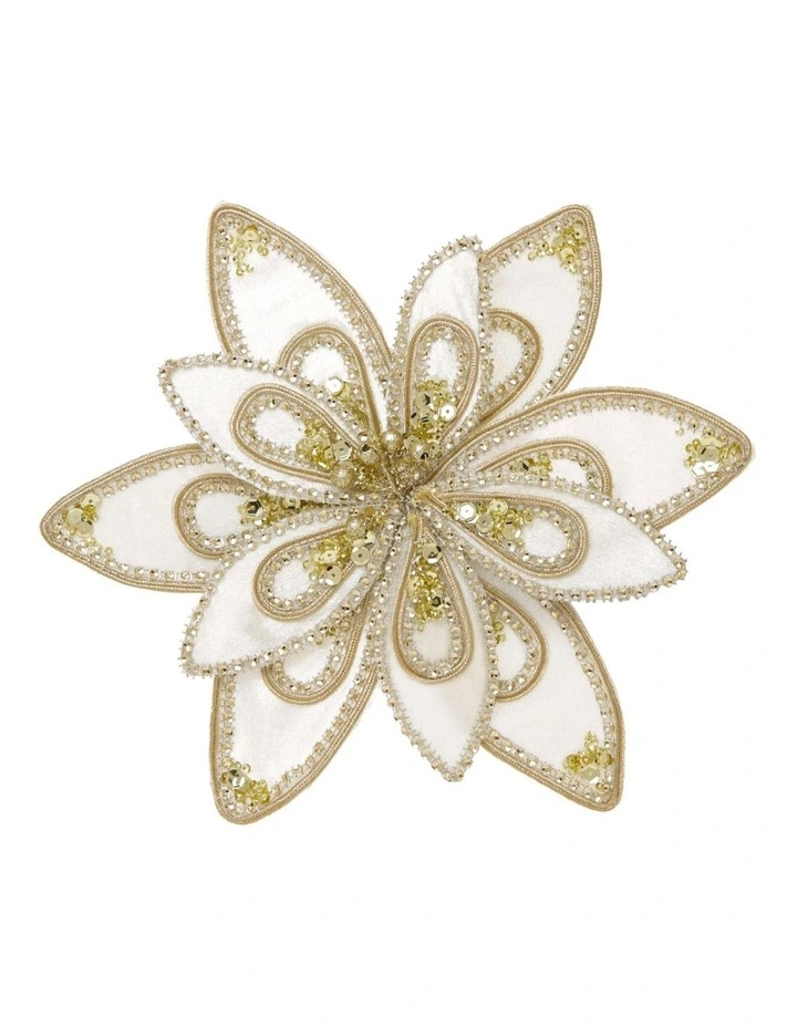 MYER GIFTORIUM Luxe Ivory and Gold Fabric Poinsettia on Clip