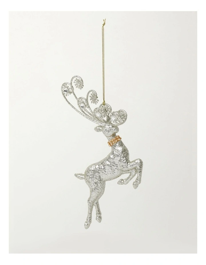 Myer Giftorium Luxe Plastic Leaping Reindeer Ornament- Silver: 17cm