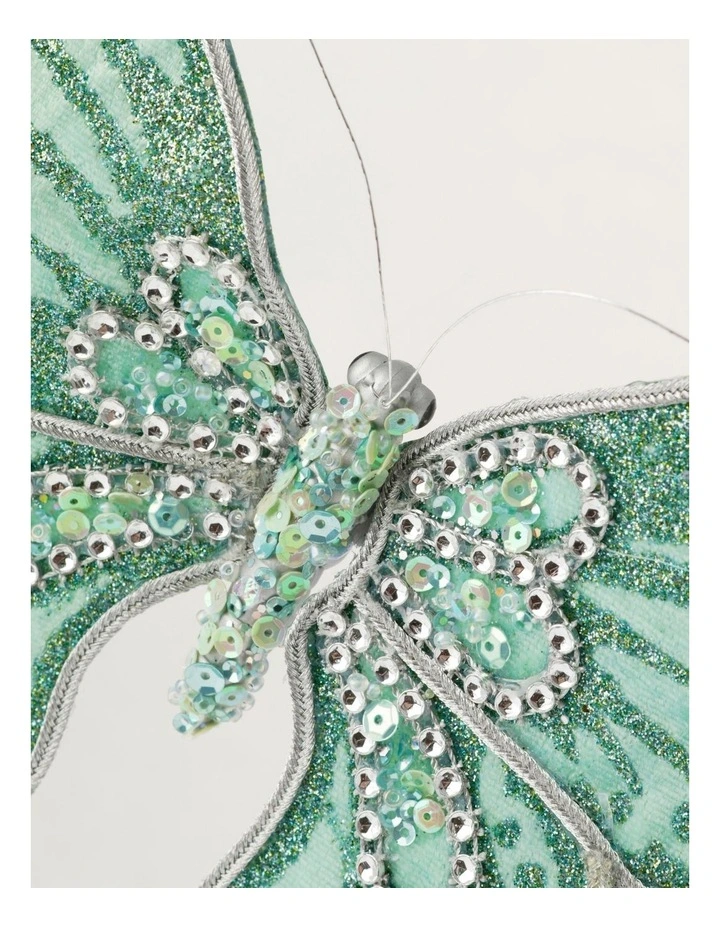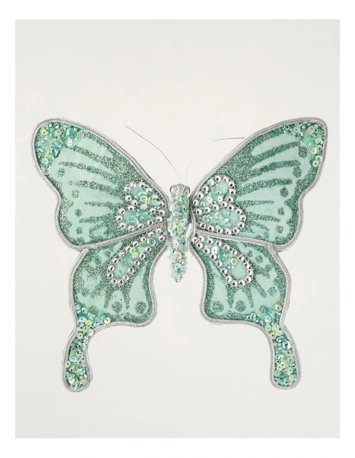 Myer Giftorium Luxe Velvet & Sequin Butterfly Clip- Mint: 15 cm