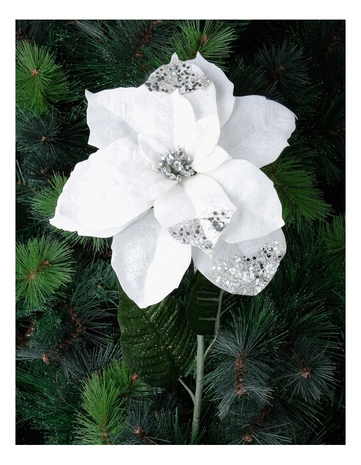 Coupon 🧨 Myer Giftorium Luxe White Poinsettia With Glitter Stem Pick πŸ’―