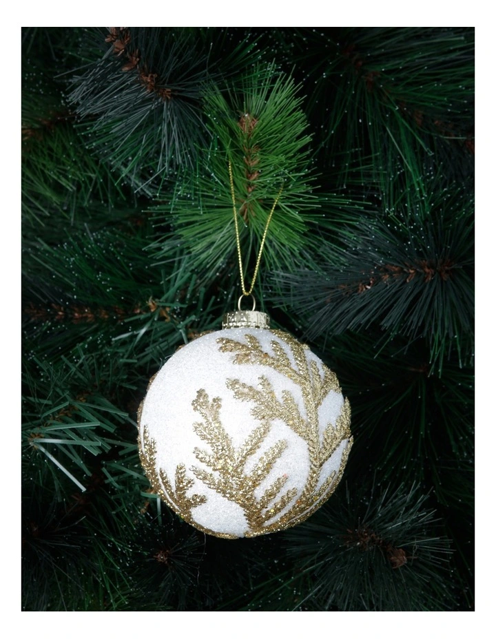 MYER GIFTORIUM Luxe White Styrofoam Ball with Gold Glitter Leaves