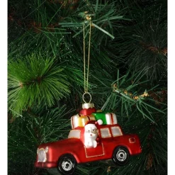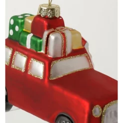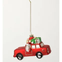 Myer Giftorium Merry & Bright Glass Santa On Car Ornament- Red: 11cm