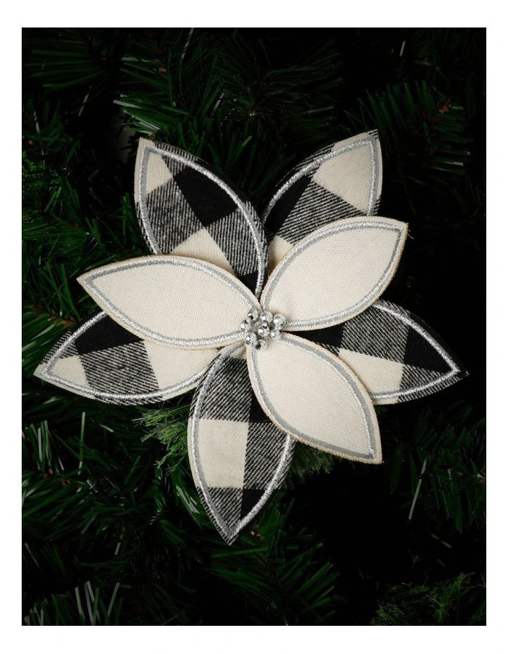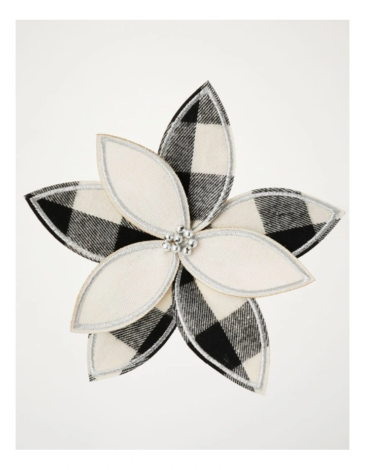 Best Pirce πŸ₯° Myer Giftorium Modern Holiday 15cm Fabric Plaid Poinsietta Clip In Black/White πŸ˜€