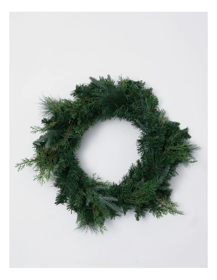 Myer GiftoriumΒ Modern Holiday Faux Cedar & Needle Pine Wreath 60cm Green
