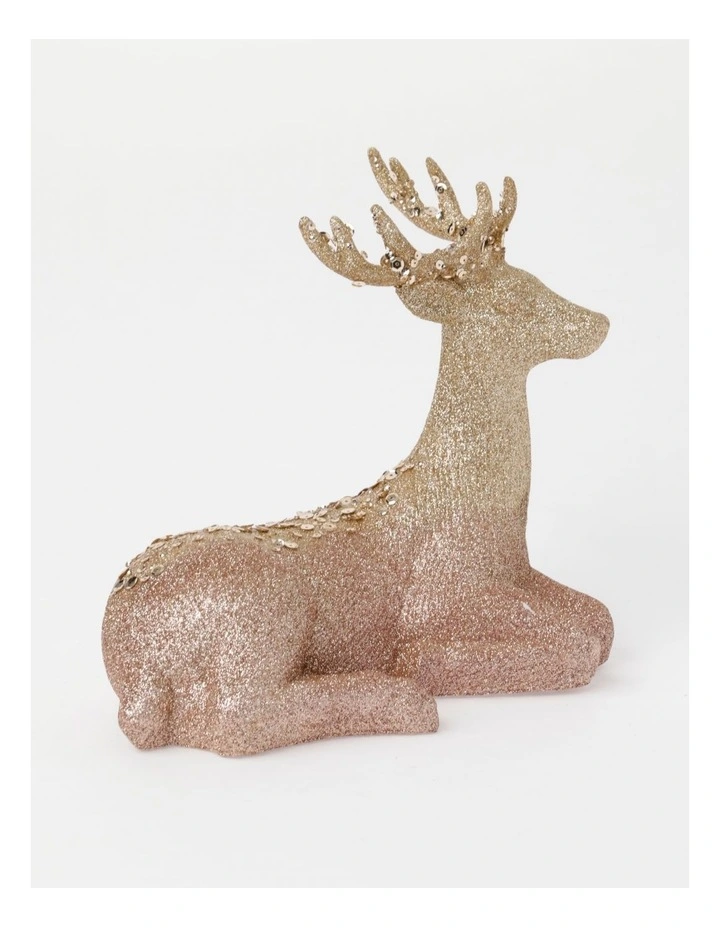 Brand new πŸŽ‰ Myer Giftorium Plastic Glittered Reindeer Decoration In Champagne/Pink πŸ₯°